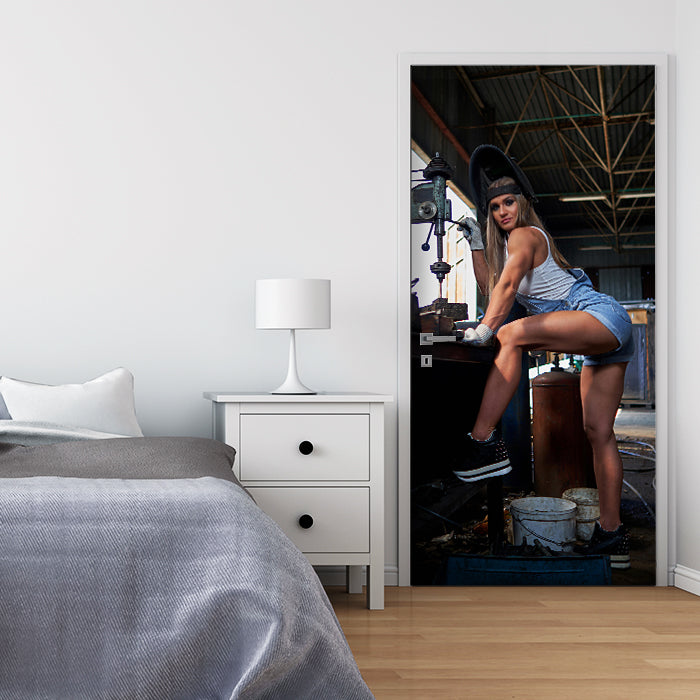 Entdecke die Türtapete Frau, Werkstatt, Halle