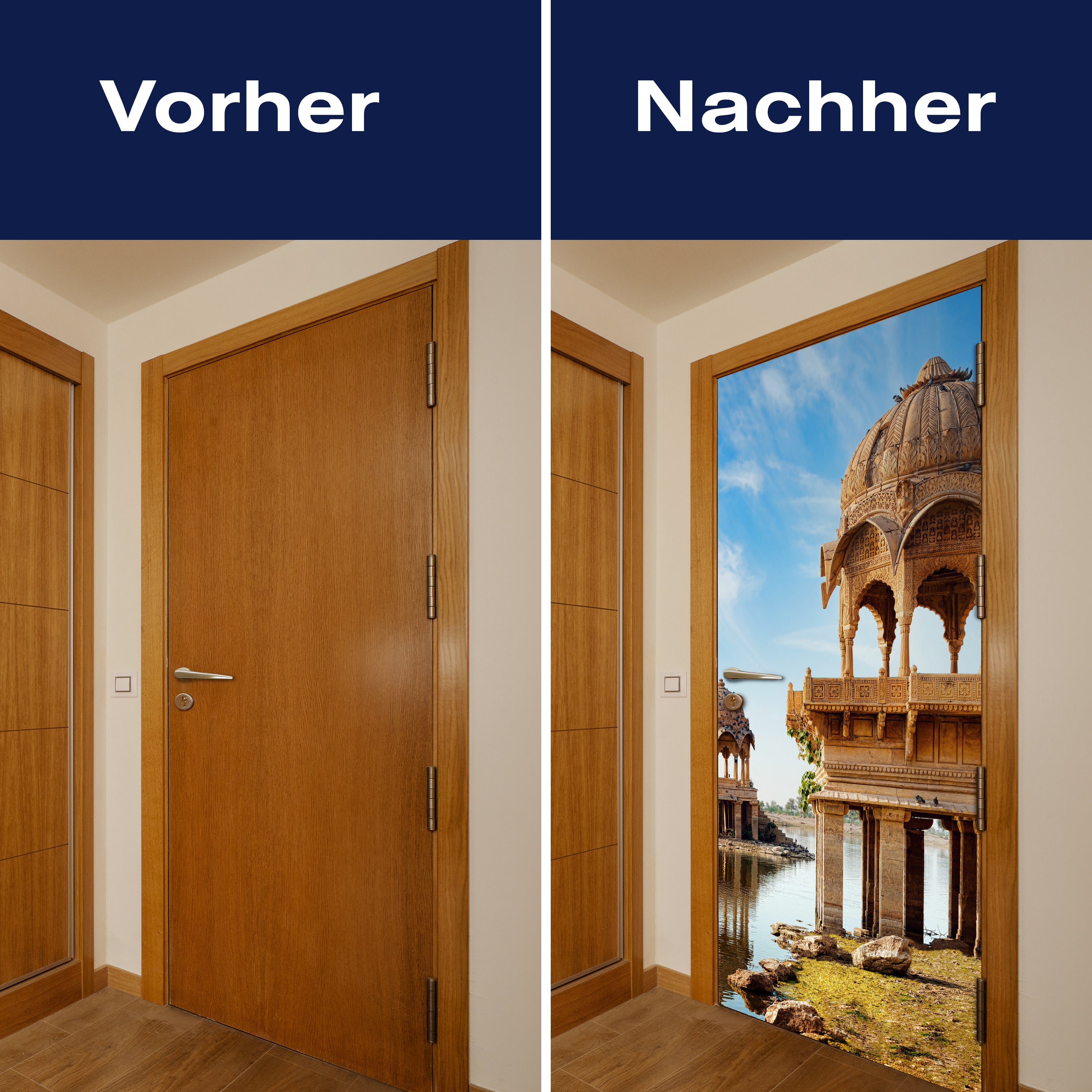 Hast du jemals darüber nachgedacht, wie eine einfache Veränderung deinen Wohnraum komplett umgestalten kann? Die Türtapete Gadi Sagar See, Indien von Wandmotiv24 ist genau das, was du brauchst, um deinem Zuhause einen Hauch von Einzigartigkeit und Stil zu verleihen. Dieses einzigartige Design erzielt eine atemberaubende visuelle Wirkung, die jeden Betrachter in den Bann zieht.