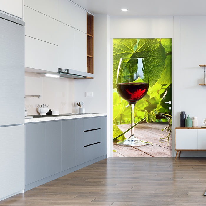 Entdecke die Türtapete Glas mit Rotwein im Weinberg