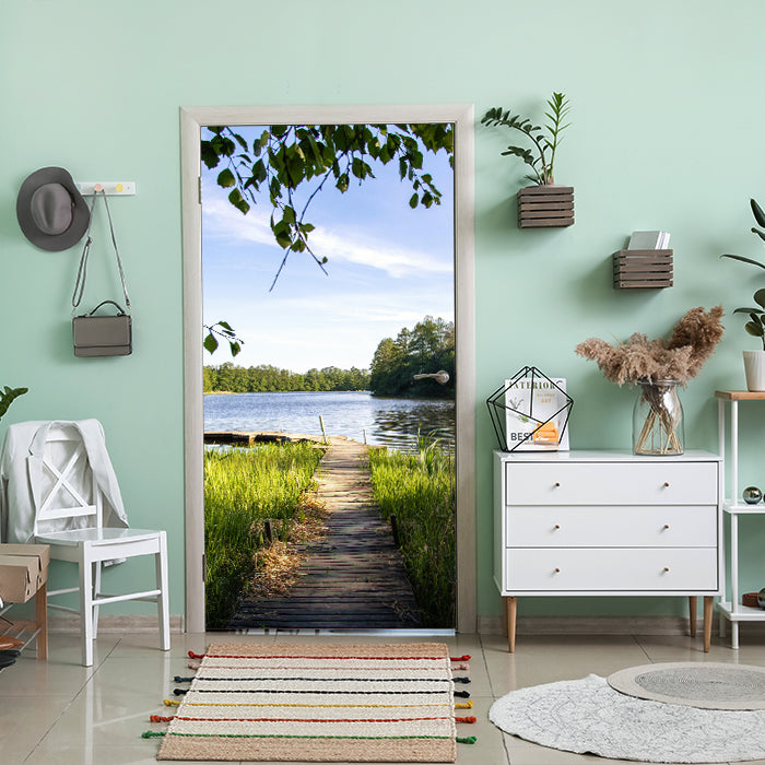 Entdecke die Türtapete Holz-steg an einem See, Natur, Teich