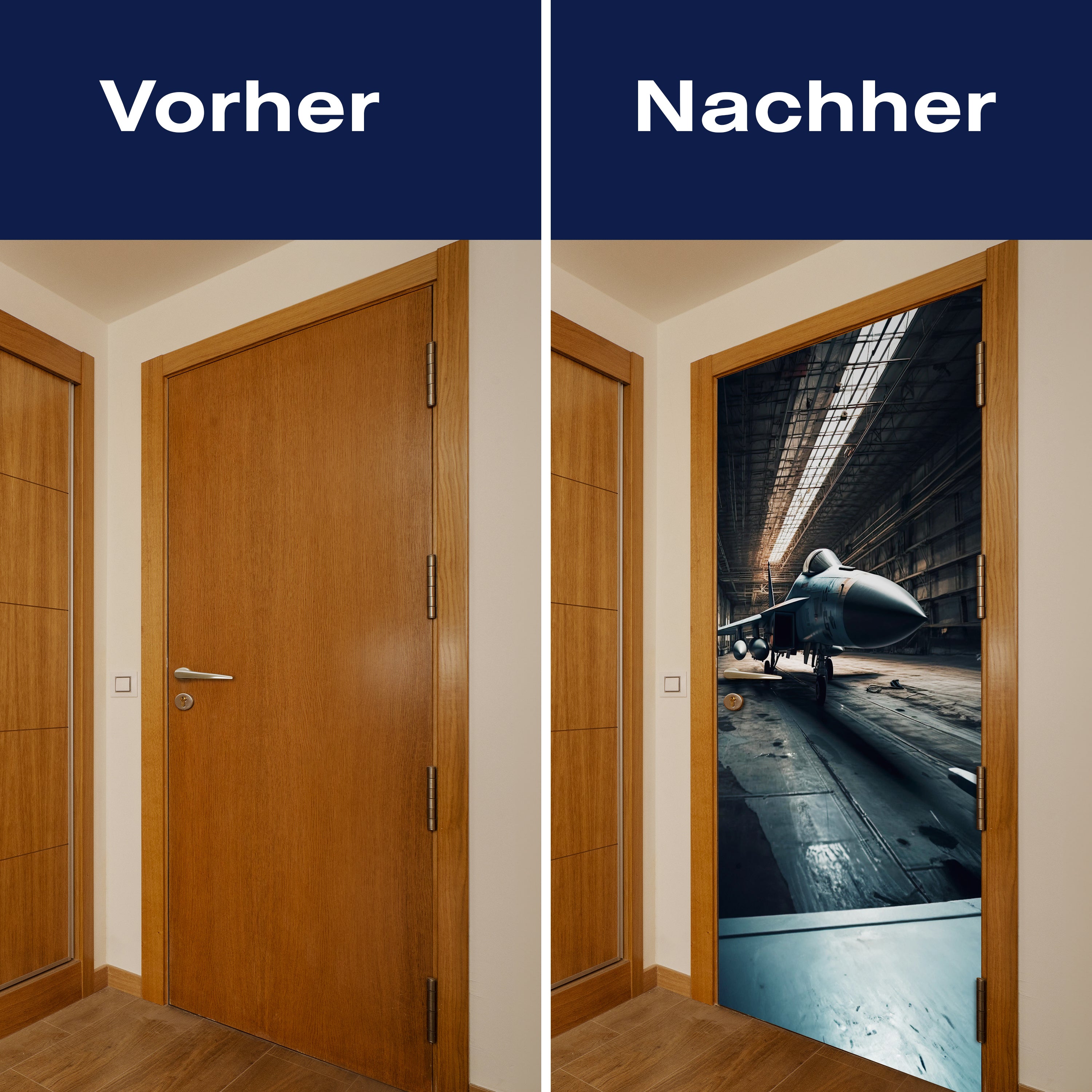 Entdecke die Türtapete Jet, Kampfflugzeug, Hangar