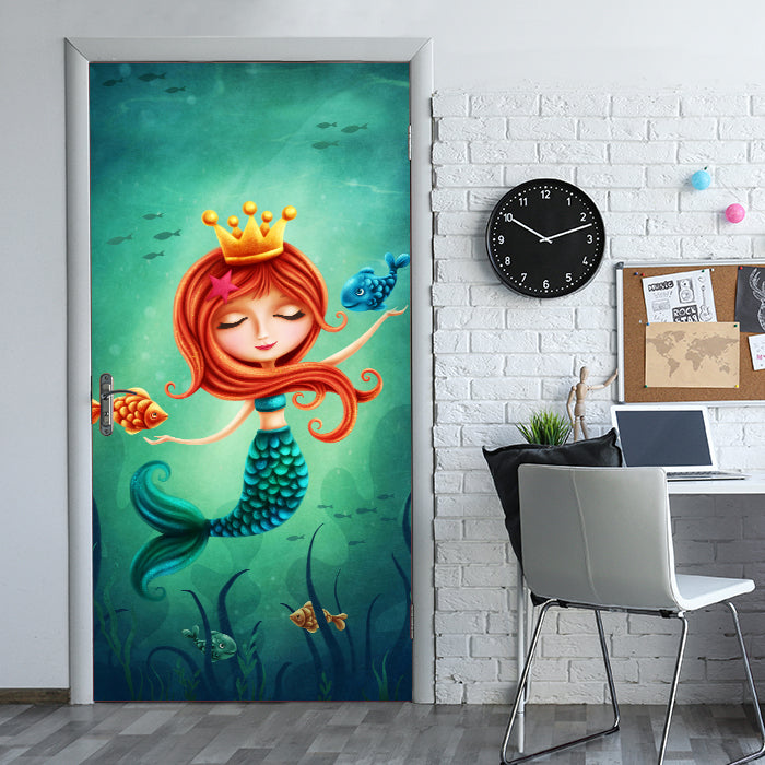 Entdecke die Türtapete kleine Meerjungfrau, Mädchen, Krone