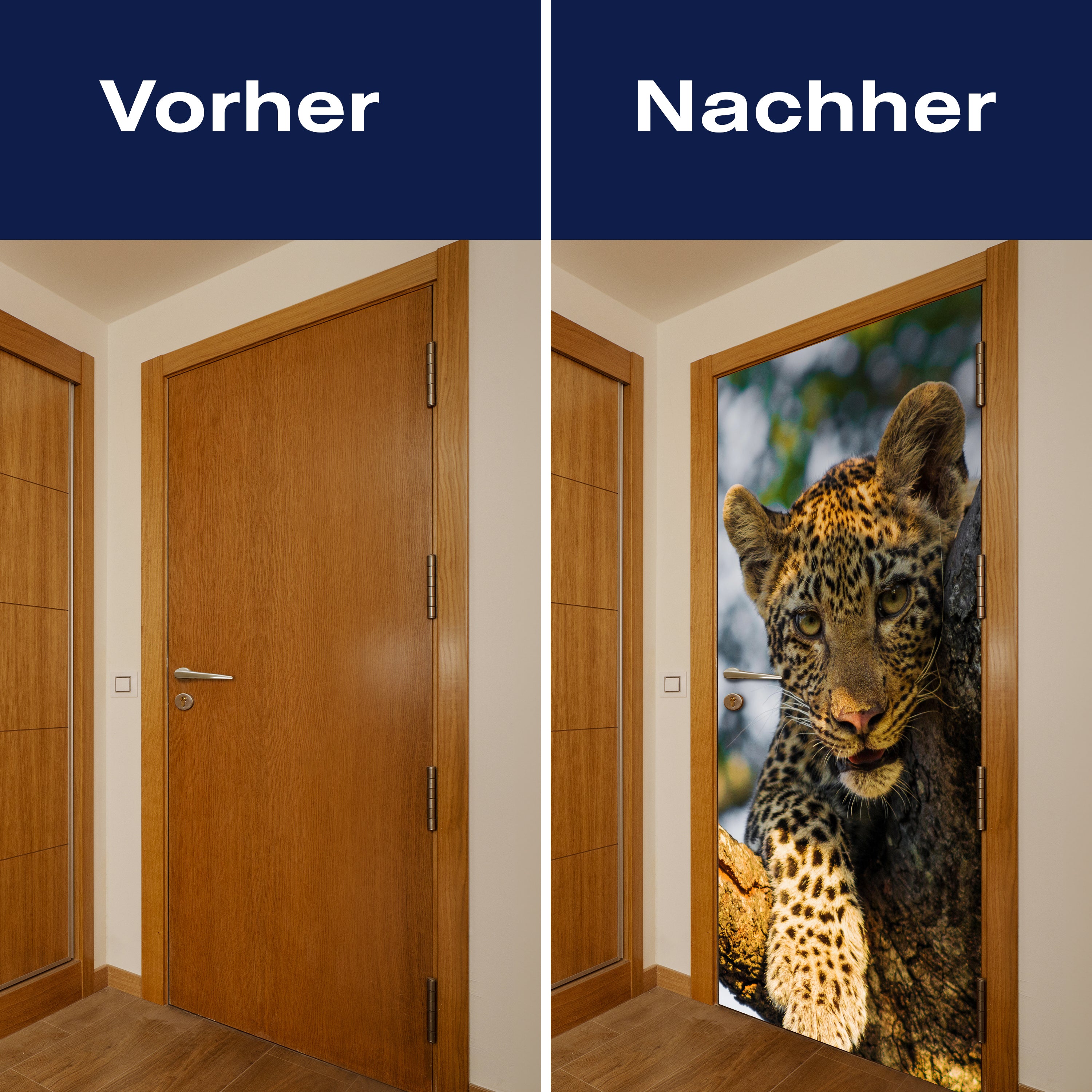 Hast du jemals darüber nachgedacht, wie eine einfache Veränderung deinen Wohnraum komplett umgestalten kann? Die Türtapete Leopard in Südafrika von Wandmotiv24 ist genau das, was du brauchst, um deinem Zuhause einen Hauch von Einzigartigkeit und Stil zu verleihen. Dieses einzigartige Design erzielt eine atemberaubende visuelle Wirkung, die jeden Betrachter in den Bann zieht.