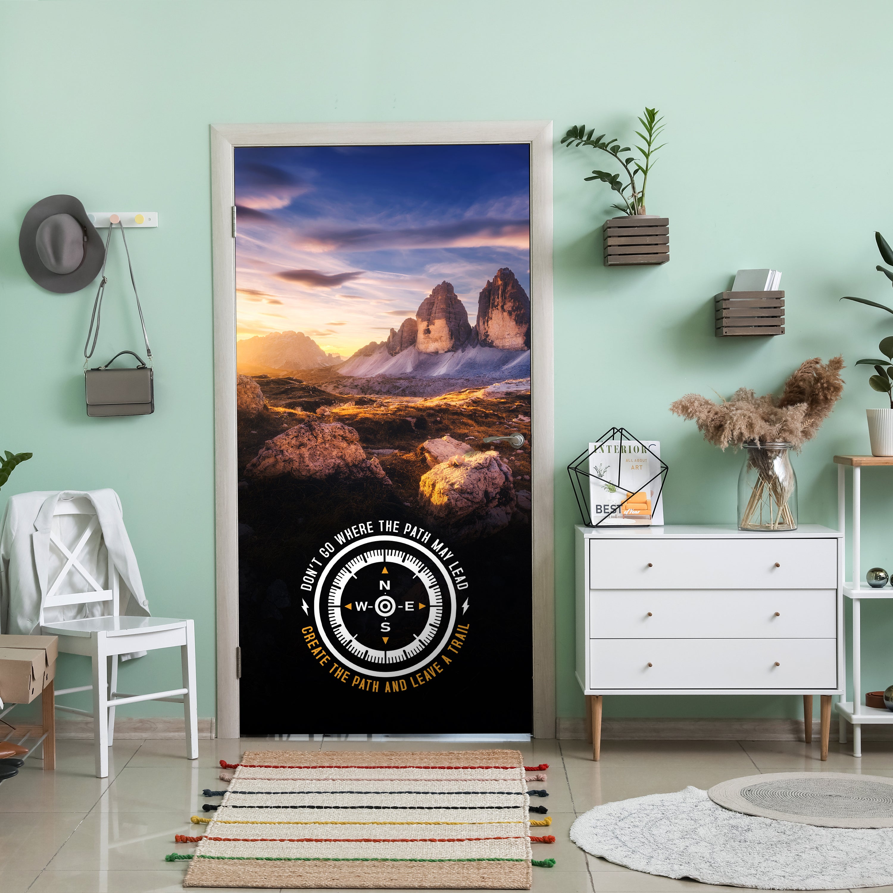 Entdecke die Türtapete Motivation, Kompass, Berge