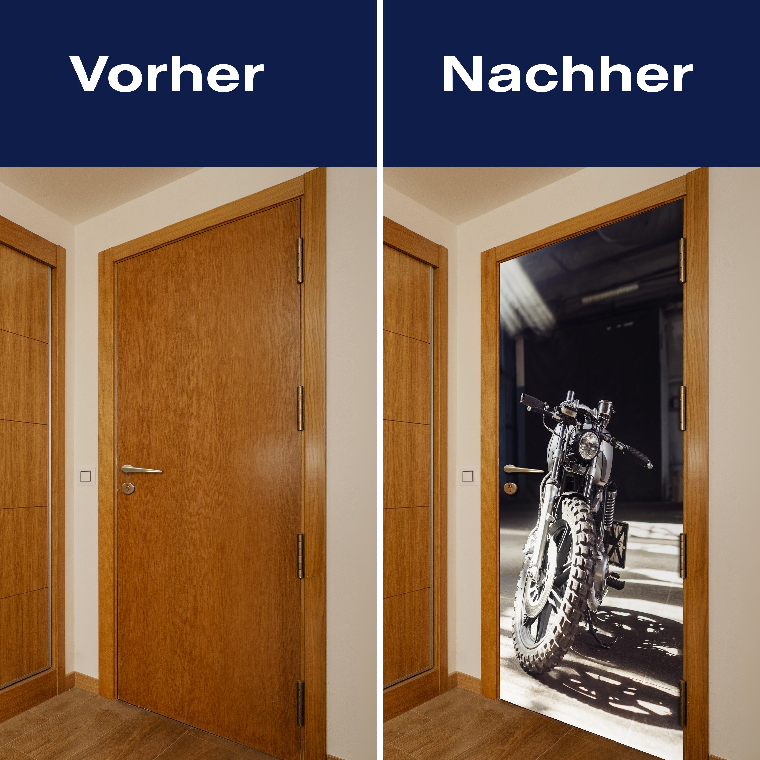 Hast du jemals darüber nachgedacht, wie eine einfache Veränderung deinen Wohnraum komplett umgestalten kann? Die Türtapete Motorrad, Naked Bike, Garage, Offroad von Wandmotiv24 ist genau das, was du brauchst, um deinem Zuhause einen Hauch von Einzigartigkeit und Stil zu verleihen. Dieses einzigartige Design erzielt eine atemberaubende visuelle Wirkung, die jeden Betrachter in den Bann zieht.