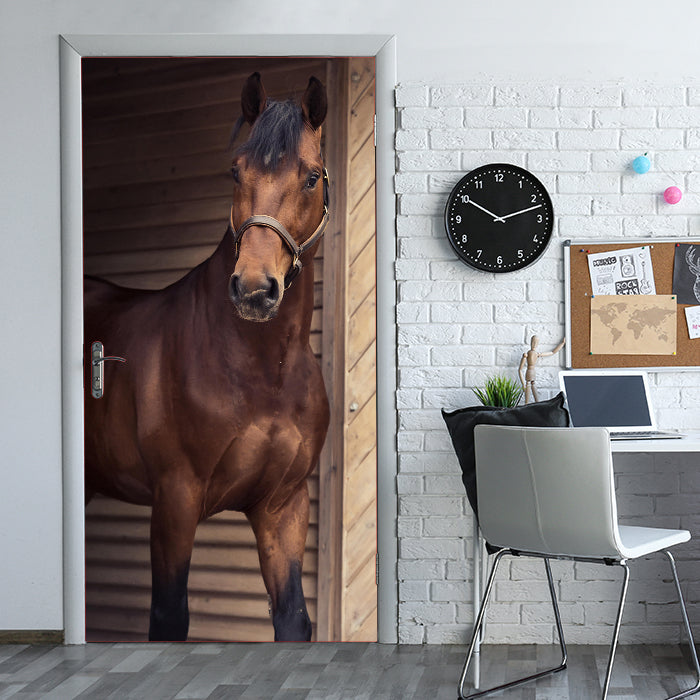 Entdecke die Türtapete Pferd an Stall-tür, Tiere, Reiten, Box