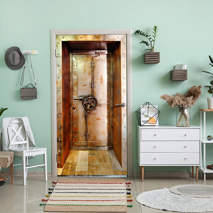 Türtapete rostige Metall Tür mit Dreh Rad, Tresor M1383