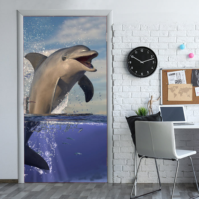 Entdecke die Türtapete springender Delfin, Säugetier, Sonne