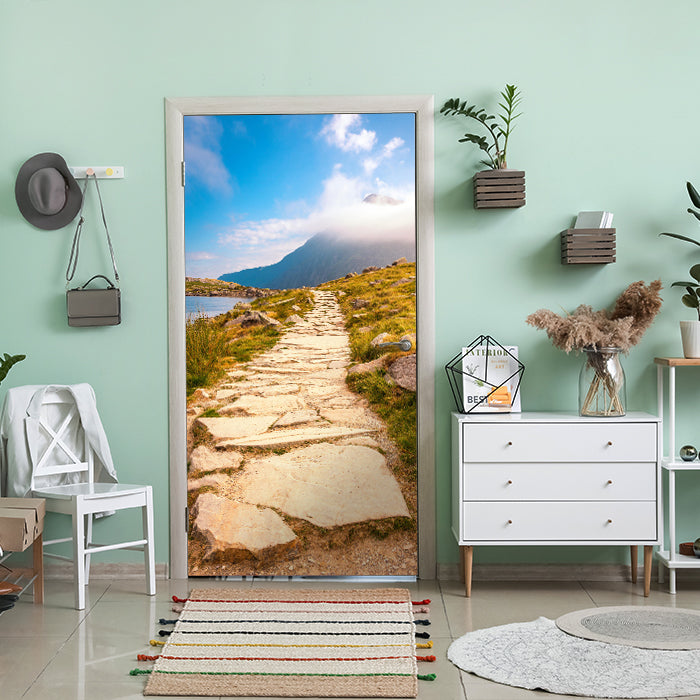Entdecke die Türtapete Stein-weg an Berg-see, Gebirge, Wolken