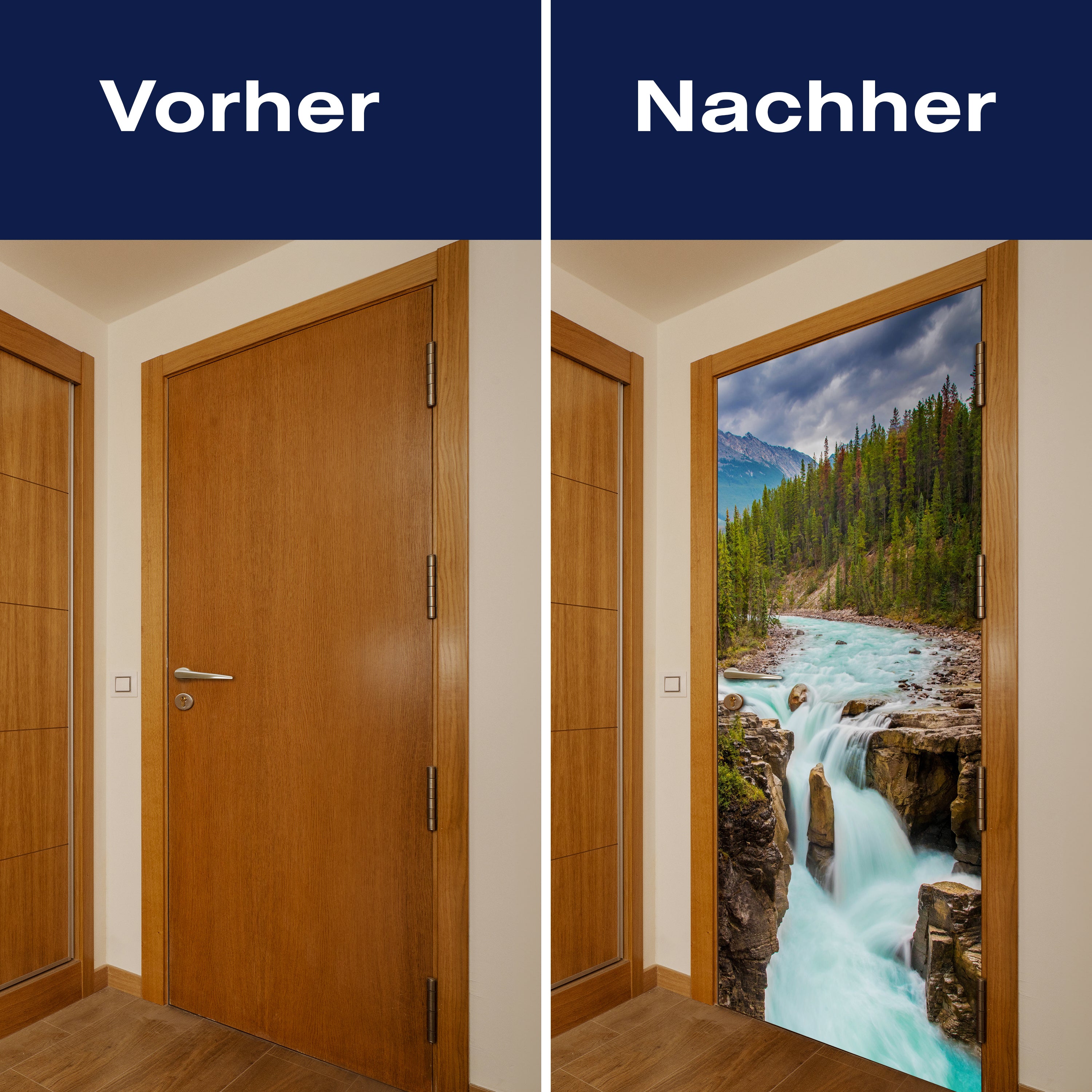 Hast du jemals darüber nachgedacht, wie eine einfache Veränderung deinen Wohnraum komplett umgestalten kann? Die Türtapete Wasserfall, Fluss, Wald, Berge von Wandmotiv24 ist genau das, was du brauchst, um deinem Zuhause einen Hauch von Einzigartigkeit und Stil zu verleihen. Dieses einzigartige Design erzielt eine atemberaubende visuelle Wirkung, die jeden Betrachter in den Bann zieht.