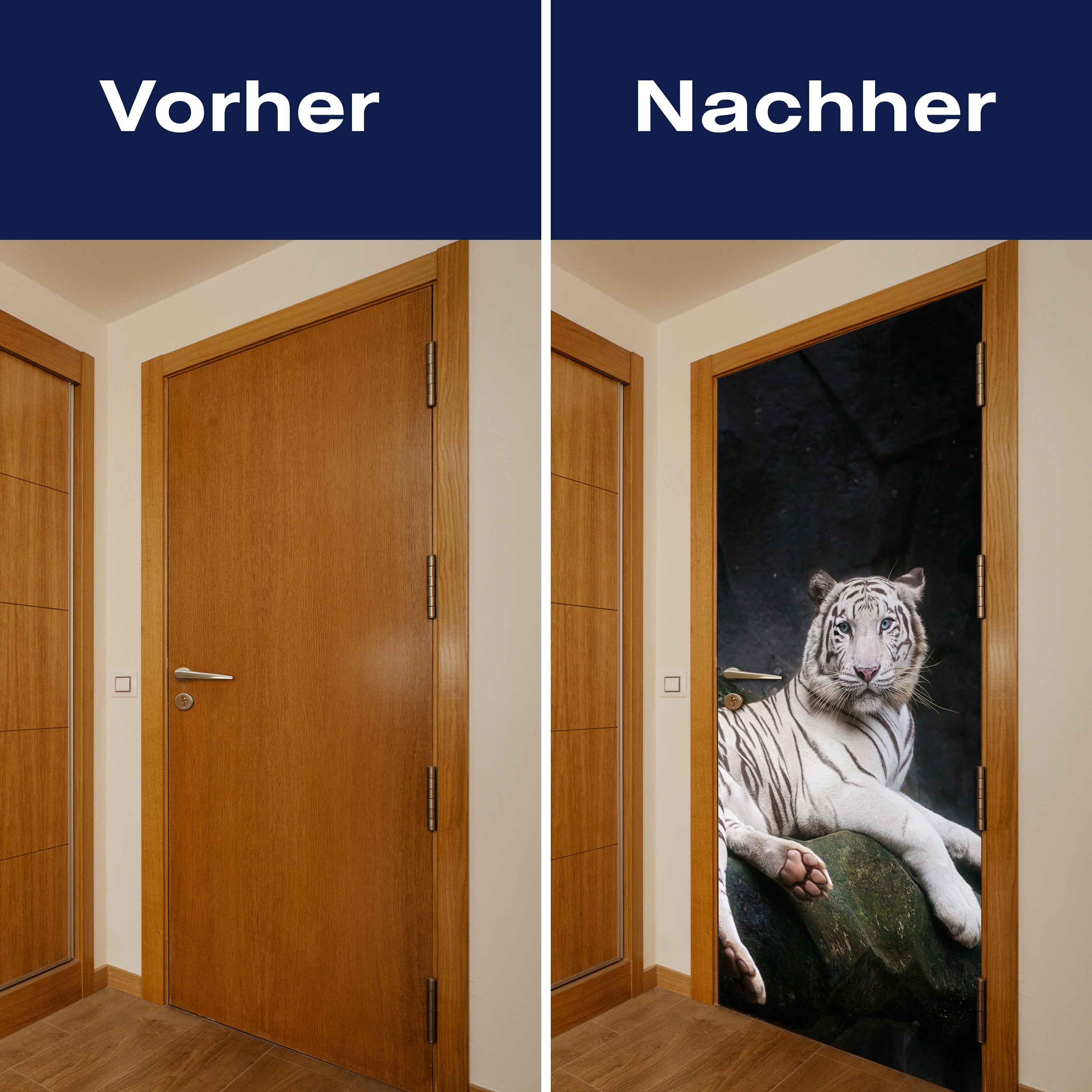 Entdecke die Türtapete Weißer Tiger sitzt in der Höhle