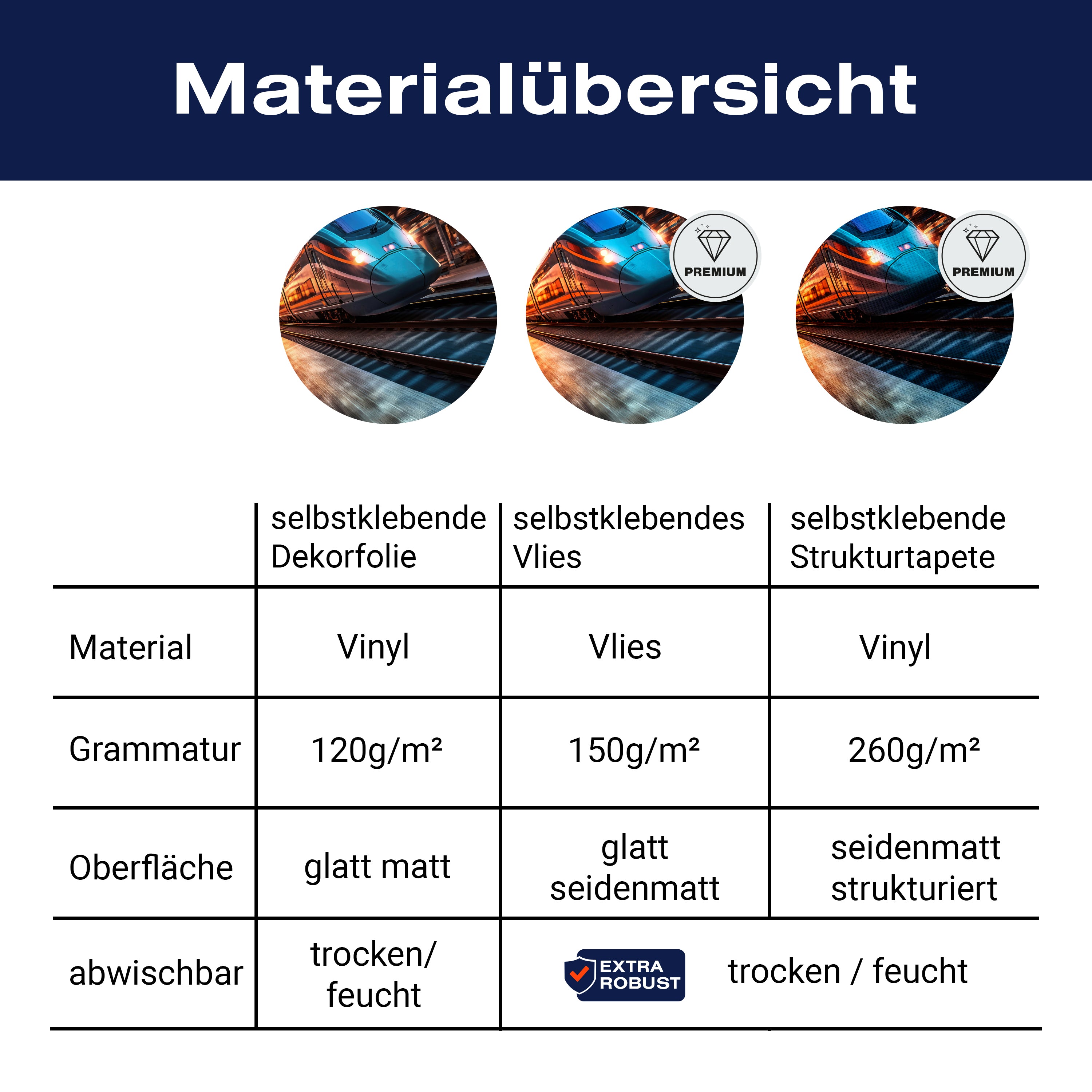 Sag ade zu komplizierten Anbringungsprozessen. Unsere Türtapeten, verfügbar in den Größen von 70x200 cm bis 100x200 cm, ermöglichen eine kinderleichte Installation. Wähle zwischen selbstklebender Dekorfolie, Vlies 150g oder Strukturtapete 260g, um deinem Zuhause einen Hauch von Eleganz zu verleihen.